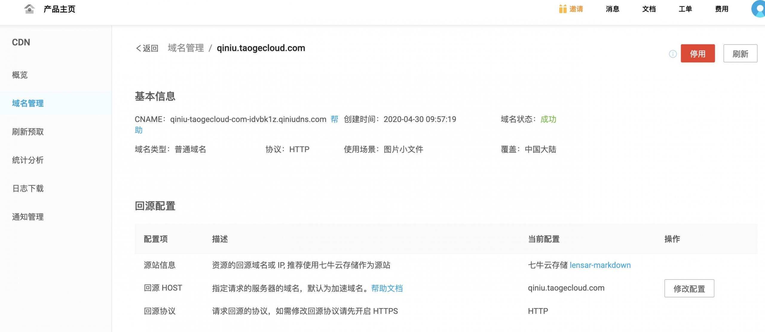 七牛云支持自定义域名,因此我现在taogeshare.com下启动了二级域名qiniu.taogeshare.com,他的CNAME指向七牛云存储的存储桶的URL。这样这个域名不会过期,可以使用MWeb中添加七牛云图床,把Markdown文档中的图片上传到七牛云,返回云url链接。