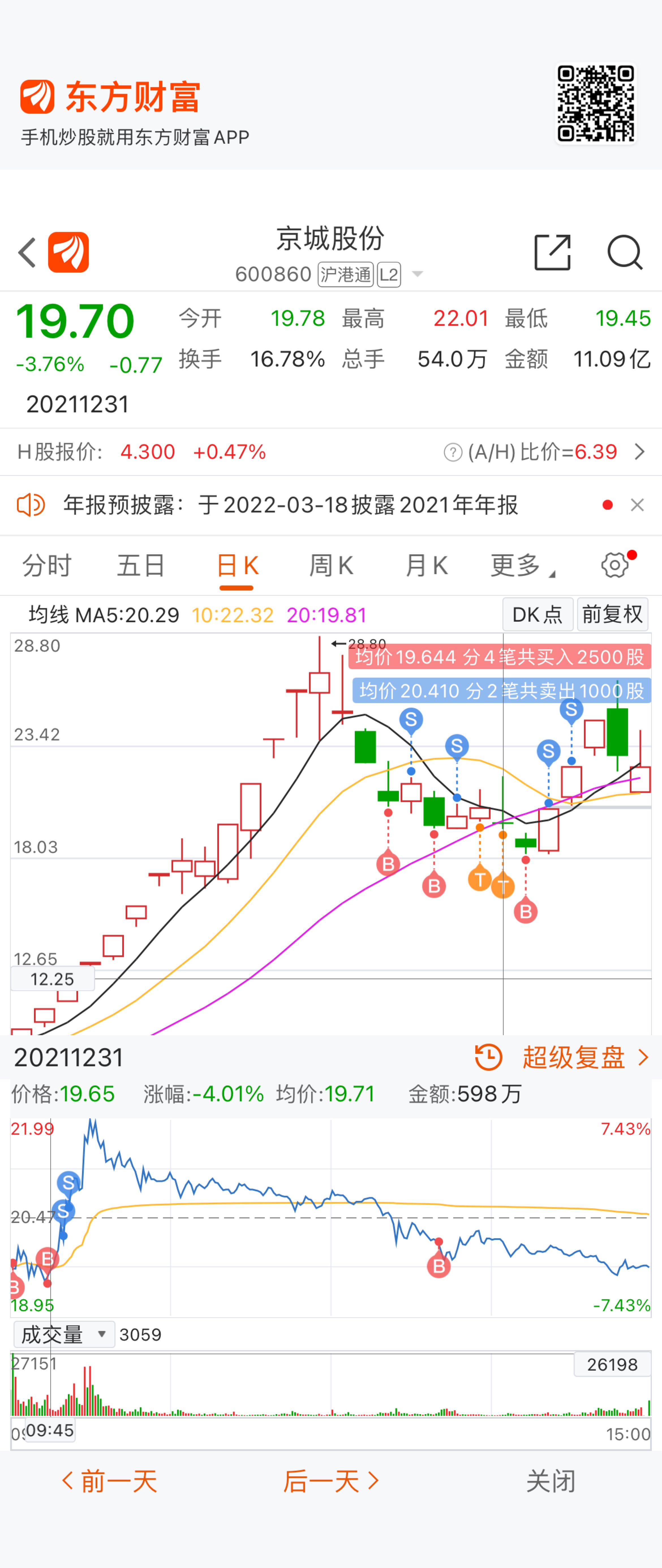 2、由于重仓低吸次日就给了涨停反馈,而此时涨停的心理预期很爽,但实际从价格上看,相比前一日低吸的也就不到一块钱的浮盈,由于涨停带来的愉悦感和低吸涨停卖的思维定势,导致涨停板上扔掉了2000股筹码,这些远远没有达到反弹预期的高度。